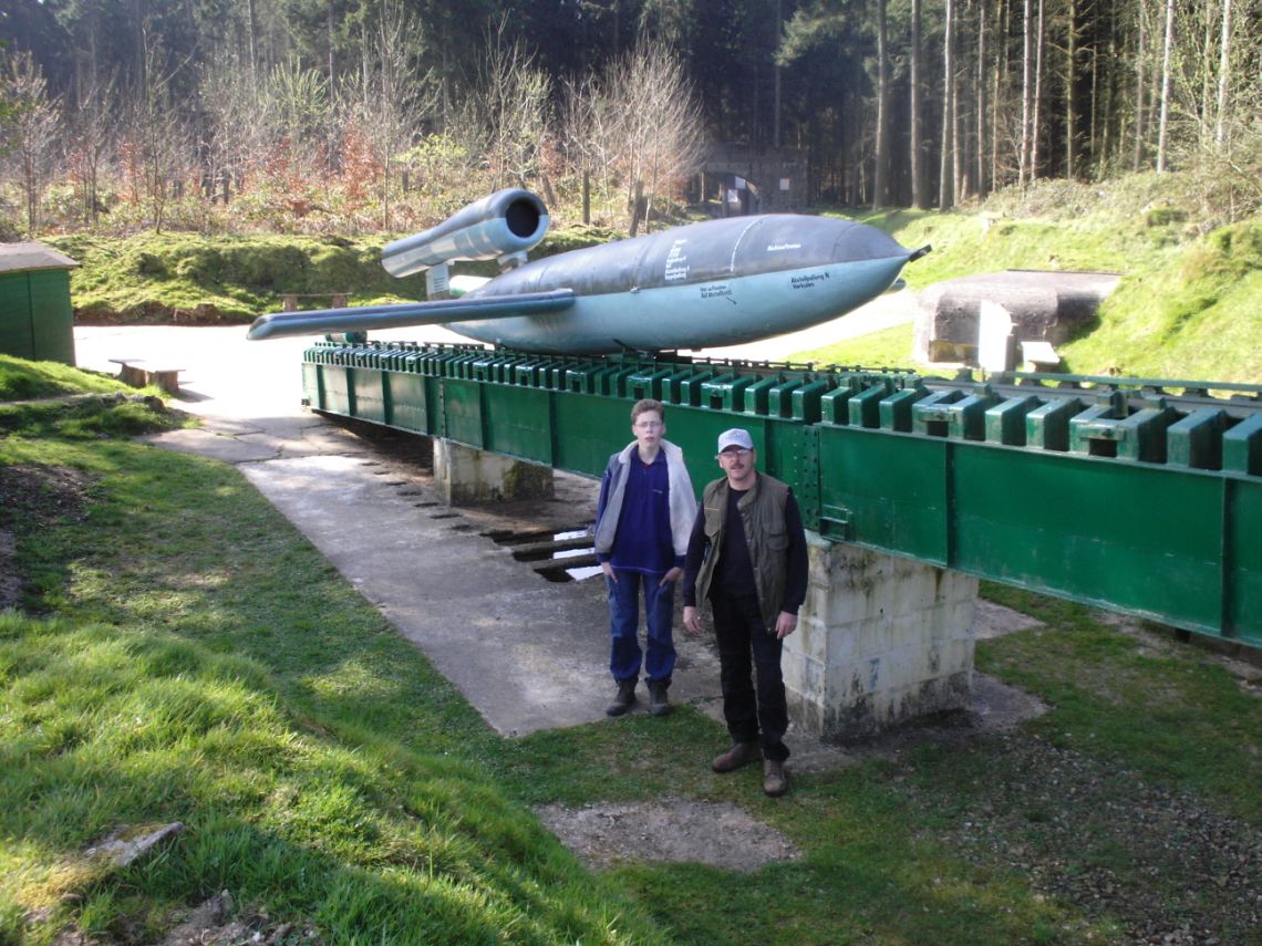 * V1 posé sur sa rampe catapulte. Site de Ardouval en Seine Maritime. (DL)