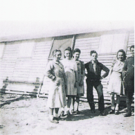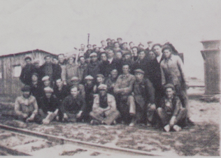 * Photo d’une équipe de STO devant les baraques du camp de Neuville sur Margival en 1943. (Juon Louis)