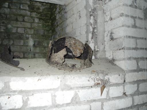 Milieu gauche : vestige d’un casque américain datant de l’occupation alliée.