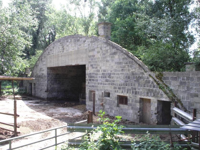 En bas : un des deux hangars béton qui reçut les Arado 234 et les ME 262 à réaction en août 44, l’autre fut détruit après guerre. (DL)