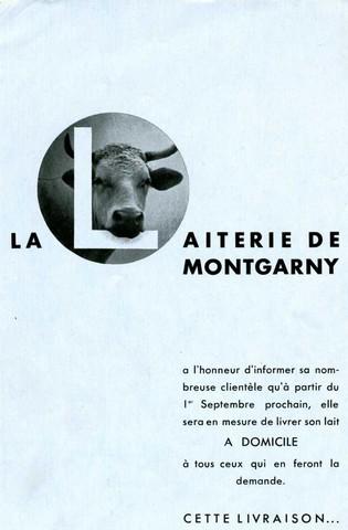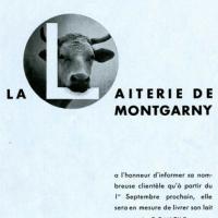 Après la guerre de 14-18, et avec la reconstruction, la laiterie voit sa raison sociale « Domaine de Montgarny » inscrite sur les bouteilles se transformer en « Laiterie de Montgarny ». La laiterie est installée dans des locaux de plus grande dimension afin d’améliorer le rendement, tant par la quantité que par la qualité. Le bâtiment qui abrite les étables est d’une construction techniquement intéressante : bâti sur une dalle de béton, la bouverie comporte quatre travées où se répartissent les vaches. Au dessus, un vaste grenier ouvert permettant le stockage du foin est constitué d’une dalle de béton armé, soutenue au rez-de-chaussée par six gros piliers en béton et deux grandes poutrelles également en béton. La charpente en bois est portée quant à elle par trois grosses poutres en bois. La modernité et les grandes dimensions de cette bouverie permettent un travail rationnel et automatisé pour assurer la nourriture et l’entretien d’un troupeau de 90 vaches laitières, très en avance pour son temps.